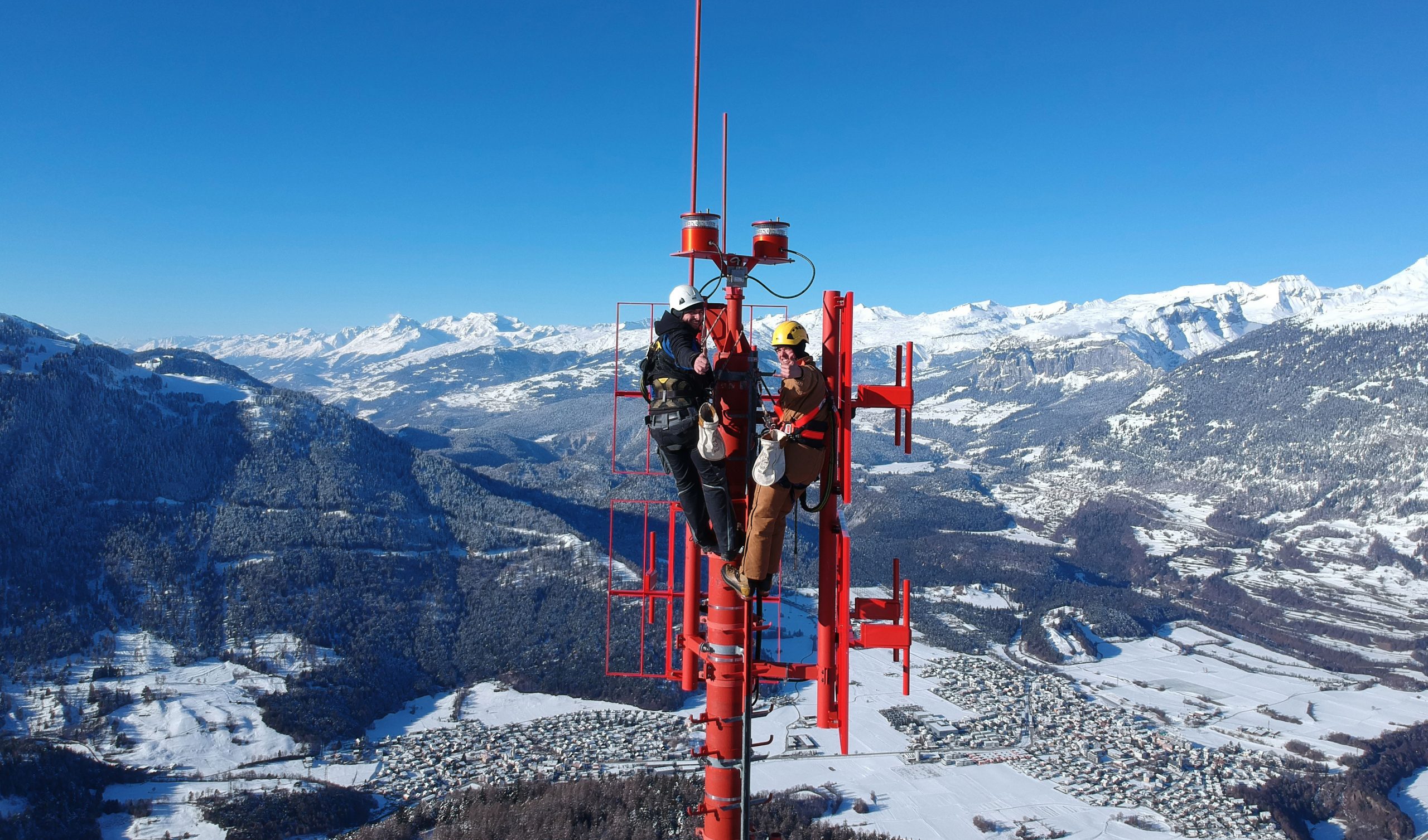 Nous montons les antennes et l’ensemble des éléments techniques du système, même dans les zones difficiles d’accès. Grâce à notre expérience : nos techniciens installent et intègrent l’ensemble des systèmes d’antenne, des technologies de faisceau hertzien et de système ainsi que tous les câbles coaxiaux HF et câbles système aux composants et à la structure métallique. Nous connaissons les installations du réseau électrique et les dispositifs ASI, et nous nous occupons des transitions système.