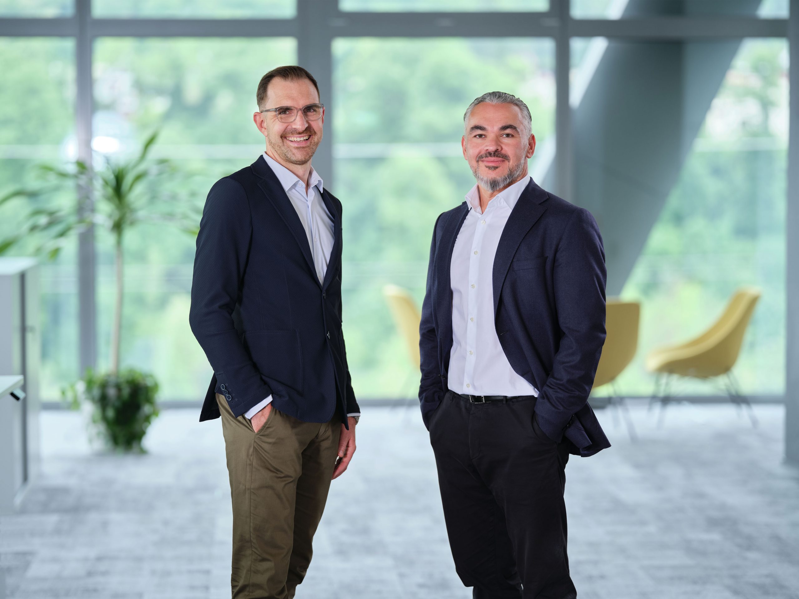 V.l.n.r: Mirco Stoffel, Head of Business Consulting for AI, Güven Zorba, Business Area Manager IT & Managed Services